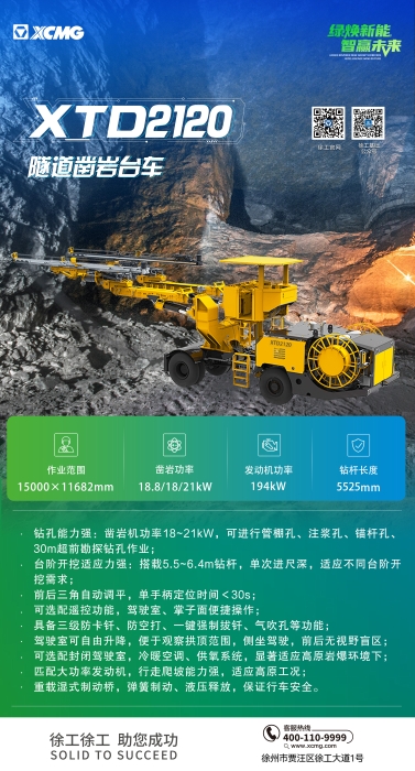 攻巖利器,全能王登場--徐工XTD2120隧道鑿巖臺(tái)車