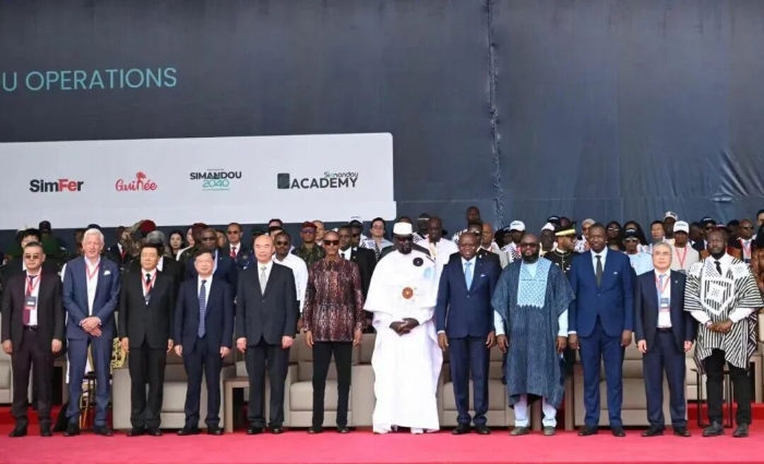 近日,幾內(nèi)亞西芒杜鐵礦投產(chǎn)儀式在馬瑞巴亞港舉行。幾內(nèi)亞總統(tǒng)馬馬迪·敦布亞,習近平主席特別代表、國務(wù)院副總理劉國中,盧旺達總統(tǒng)卡加梅,加蓬總統(tǒng)恩圭馬出席投產(chǎn)儀式。