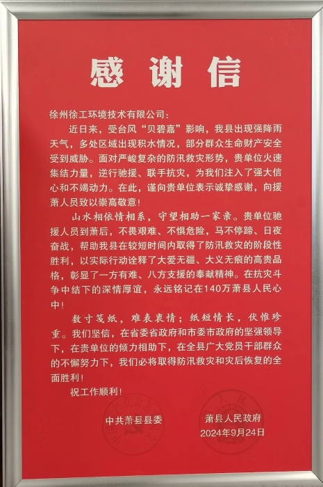 “此行是專門來(lái)感謝徐工在蕭縣防汛救災(zāi)中的無(wú)私奉獻(xiàn)。”董局長(zhǎng)表示,“你們的行動(dòng)不僅體現(xiàn)了徐工的社會(huì)責(zé)任感,更讓我們感受到了‘防汛救災(zāi)顯大愛 風(fēng)雨同舟見真情’的深刻內(nèi)涵。我們特地做了錦旗和感謝信,來(lái)表達(dá)我們的謝意?!?/span>