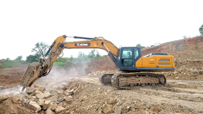 徐工挖掘機打破碎很有勁,駕駛舒適。我們在這個項目上主要做巨石破碎工作,徐工的設備在回轉(zhuǎn)、破碎等動作上都表現(xiàn)的很優(yōu)秀,屬具更換很便捷,底盤比其他品牌的同噸位設備都要穩(wěn)。