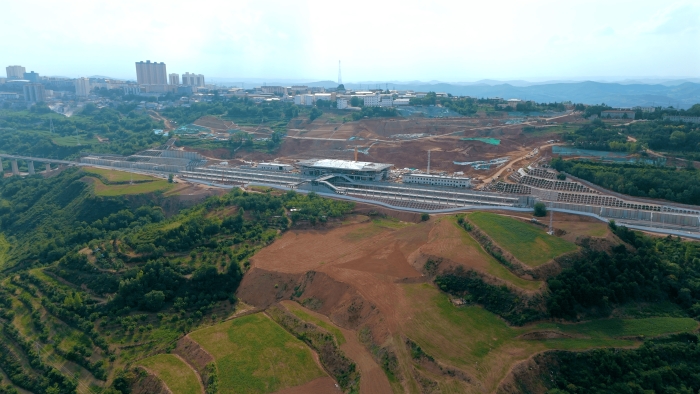 西安至延安高鐵控制性節(jié)點——宜君高鐵站建設現(xiàn)場,巨型鋼網(wǎng)架正凌空合龍。這座以“漢魏風骨”為設計靈魂的站房,自開工以來歷經(jīng)三次寒暑攻堅,現(xiàn)已進入主體封頂沖刺階段。