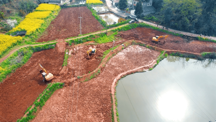 繼續(xù)向東,這里是萬里長江第一城——宜賓,在宜賓江安縣陽春鎮(zhèn),5000畝高標(biāo)準(zhǔn)農(nóng)田建設(shè)進(jìn)入尾聲,項(xiàng)目高峰期投入30余臺徐工挖掘機(jī)。