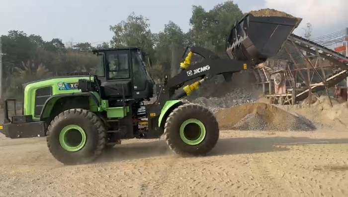 徐工XC968-EV正在該料場擔(dān)負(fù)著為產(chǎn)線上料的工作,6500kg的額定載荷,≥180kN的最大掘起力,3485mm的卸載高度,輕松滿足該項(xiàng)目的生產(chǎn)作業(yè)需要。整機(jī)配備的先進(jìn)控制系統(tǒng),操作簡便、響應(yīng)迅速,即使在越南高溫高濕環(huán)境中,XC968-EV依然保持著穩(wěn)定的性能輸出,高效作業(yè)。與此同時(shí),駕駛室視野開闊,各操作機(jī)構(gòu)設(shè)計(jì)合理,讓駕駛員獲得更舒適的操作體驗(yàn)。