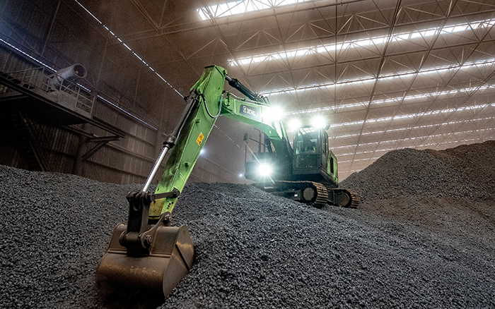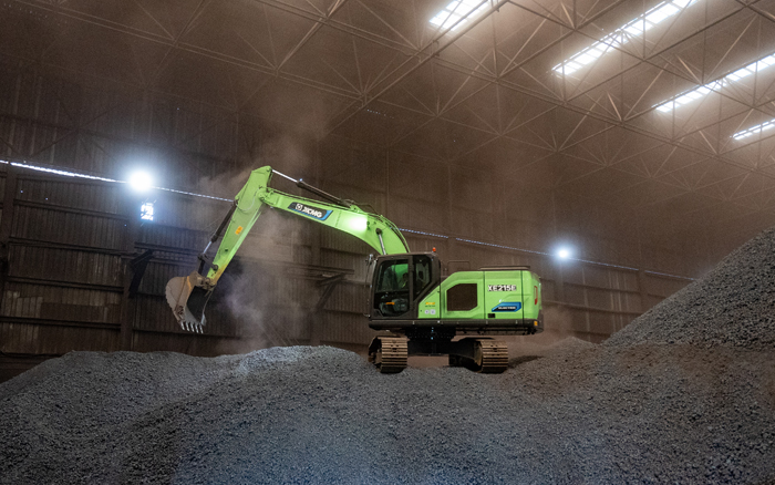 在封閉的廠房中,XE215EV純電動(dòng)挖掘機(jī)正對鋼鐵原料礦石進(jìn)行挖掘、搬運(yùn)作業(yè),鋼鐵冶煉廠屬于重灰塵環(huán)境,而XE215EV卻練就了一身“超級(jí)本領(lǐng)”。