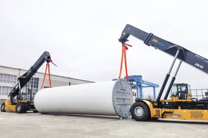 目前,XCS70KS風(fēng)電正面吊已在揚(yáng)州港順利完成多次大型風(fēng)電部件裝卸任務(wù),其穩(wěn)定高效的性能成為長(zhǎng)三角地區(qū)智慧口岸建設(shè)的標(biāo)桿力作。該裝備的成功應(yīng)用,不僅全面提升了港口運(yùn)營(yíng)質(zhì)效,也為全國(guó)港口的智能化升級(jí)提供了可復(fù)制、可推廣的徐工-揚(yáng)州港樣板。