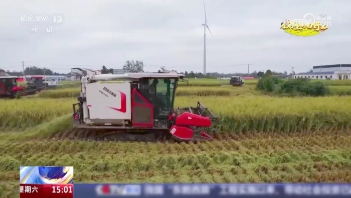 9月20日,中央電視臺新聞頻道《新聞直播間》“在希望的田野上”欄目將鏡頭對準湖北應城,報道了八臺徐工XR720履帶式谷物聯(lián)合收獲機在當?shù)亻_展大規(guī)模糯稻收割的豐收盛景——履帶滾滾,金黃的稻穗迅速被吞入機器,頃刻間完成收割、脫粒、清選等一系列作業(yè),顆顆飽滿的籽粒穩(wěn)穩(wěn)落入糧倉。