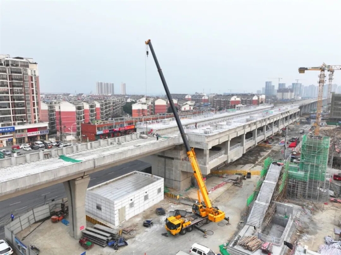 在華中某軌道交通項目現場,徐工G2代XCT50G5-1輪式起重機以40米主臂工況,穩(wěn)穩(wěn)將兩根長25米、單重1.5噸的軌道板吊運至高架橋基。整個吊裝過程精準、平穩(wěn)、動作流暢,憑借搭載的吊鉤防擺技術,大幅簡化了操作難度,提升了吊裝平穩(wěn)性與安全性,成為軌道鋪設中的關鍵力量。