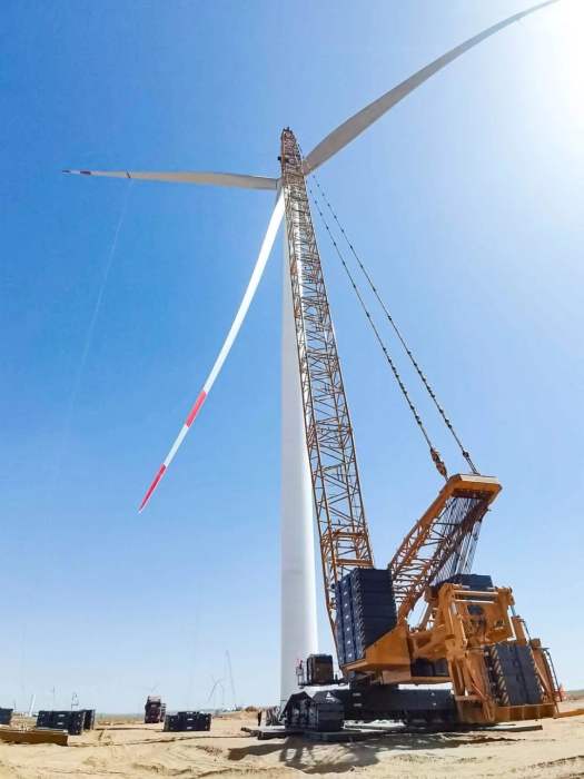 近日,徐工XLC18000M(1300噸級)履帶起重機(jī)在甘肅某風(fēng)電項(xiàng)目現(xiàn)場迎來高光時刻,圓滿完成了20臺風(fēng)機(jī)吊裝,標(biāo)志著該10萬兆瓦風(fēng)電項(xiàng)目取得階段性勝利。