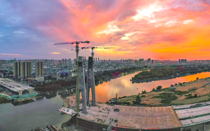 此次參建的項(xiàng)目是阜裕大橋項(xiàng)目,主要承接橋梁主塔的吊裝任務(wù)。阜裕大橋全長1735米,橋梁長1127米,主橋采用獨(dú)塔斜拉橋結(jié)構(gòu),主塔高95.6米,主橋斷面為60米超寬幅鋼箱梁,是國內(nèi)市政最寬鋼箱梁橋,建成后將成為阜陽的又一個“新地標(biāo)”。
