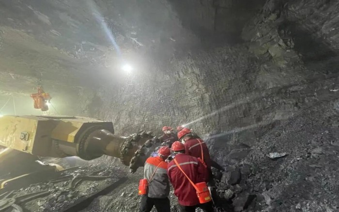 徐工XTR7/360掘進(jìn)機(jī)在礦下展開(kāi)了一場(chǎng)硬碰硬的較量,平均兩小時(shí)進(jìn)尺1m的施工效率,引來(lái)現(xiàn)場(chǎng)采礦工作人員的圍觀。