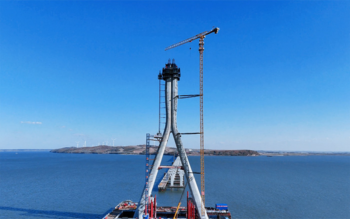 130余米的徐工XGT7528A-18S1塔機(jī)刺破蒼穹助力大橋主塔封頂