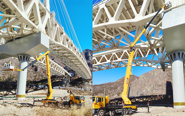 徐工 GKH65 高空作業(yè)車(chē)憑借強(qiáng)悍跨障能力,在這座關(guān)鍵橋梁的側(cè)面管路安裝施工中,盡顯硬核實(shí)力,為橋梁運(yùn)維領(lǐng)域樹(shù)立全新技術(shù)標(biāo)桿。