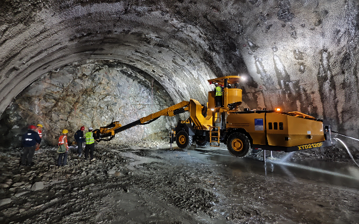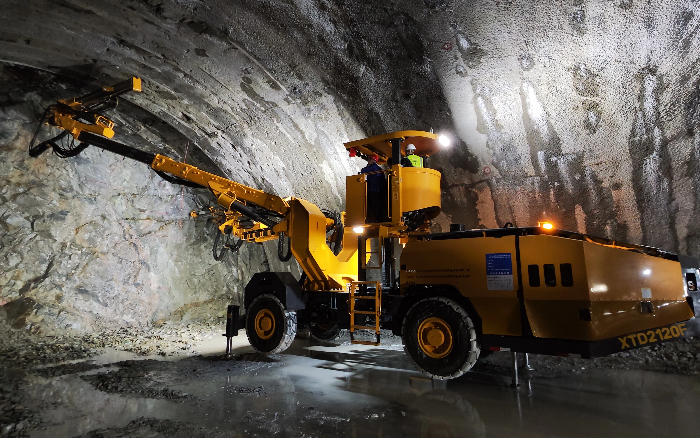 徐工XTD2120F鑿巖臺(tái)車憑借先進(jìn)的電液控制,實(shí)現(xiàn)多臂協(xié)同、精準(zhǔn)鉆進(jìn),大幅降低人工作業(yè)風(fēng)險(xiǎn),全力保障項(xiàng)目高效推進(jìn)。