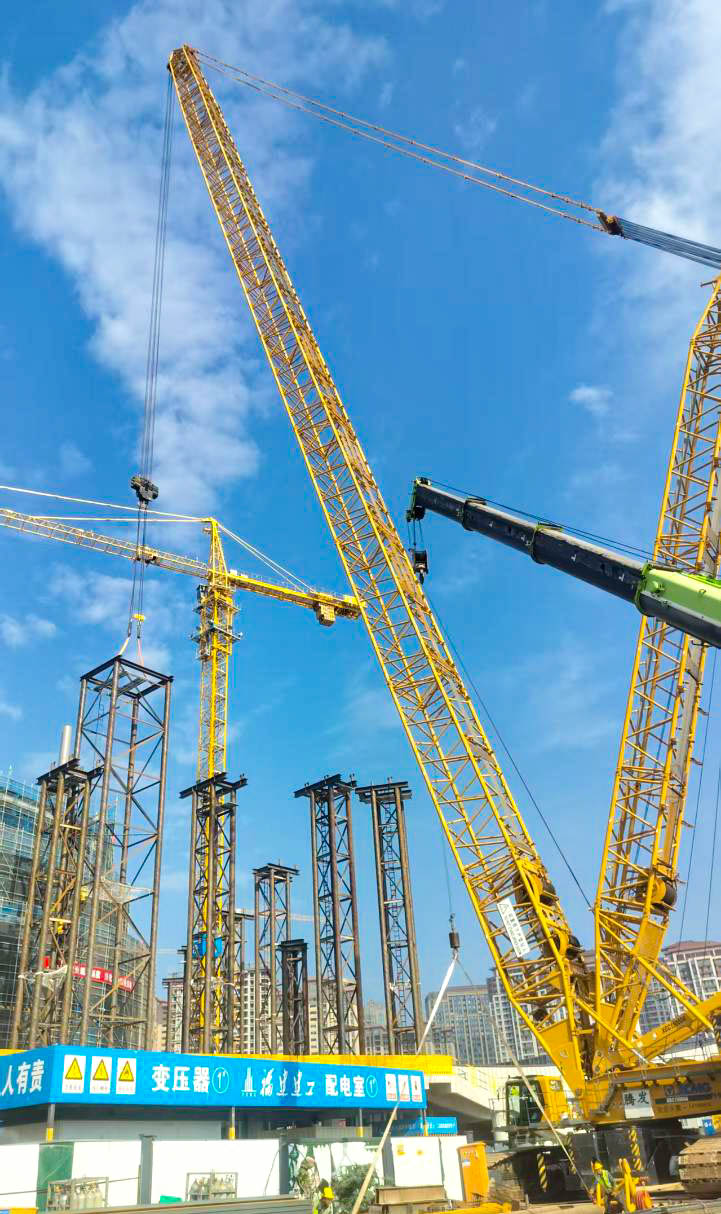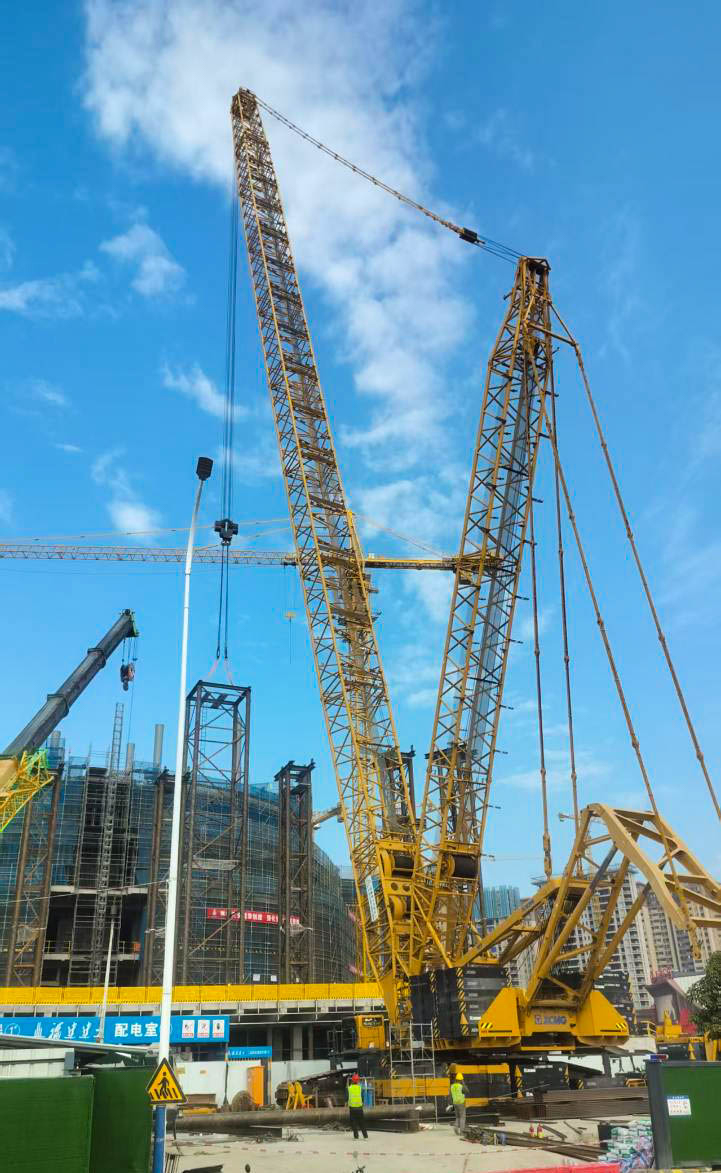 更棘手的是“場地限制關(guān)”:工地緊鄰城市道路和已建成建筑,空間局促,不僅XGC15000A的站位要反復(fù)測算,還得和多臺塔吊協(xié)調(diào)作業(yè)范圍,避免“搶空間”的機械干涉。