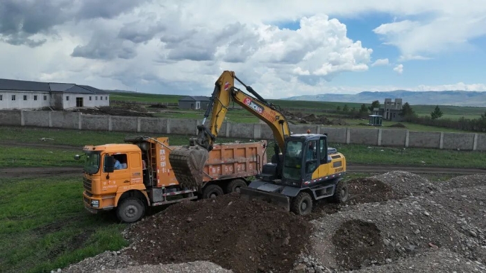 在被譽(yù)為“塞上江南”的西北地區(qū),王老板的事業(yè)迎來(lái)了“第二春”。他擁有的多臺(tái)徐工輪挖設(shè)備,活躍于各類(lèi)綠化、修路及管網(wǎng)改造工程。王老板特別贊賞設(shè)備的靈活性:“輪挖(在這里)活多,它轉(zhuǎn)場(chǎng)方便?!逼渑鋫涞目鞊Q裝置更能快速切換不同屬具,靈活滿(mǎn)足多樣化施工需求。在海拔兩三千米的高原草場(chǎng),徐工XE150WD參與著歷史悠久的馬場(chǎng)建設(shè),進(jìn)行土石方開(kāi)挖、回填與整平作業(yè)。雨季來(lái)臨時(shí),泥濘的草原常使運(yùn)輸車(chē)輛陷入困境,此時(shí)輪挖便化身?yè)岆U(xiǎn)“特種兵”,保障工程順利推進(jìn)。