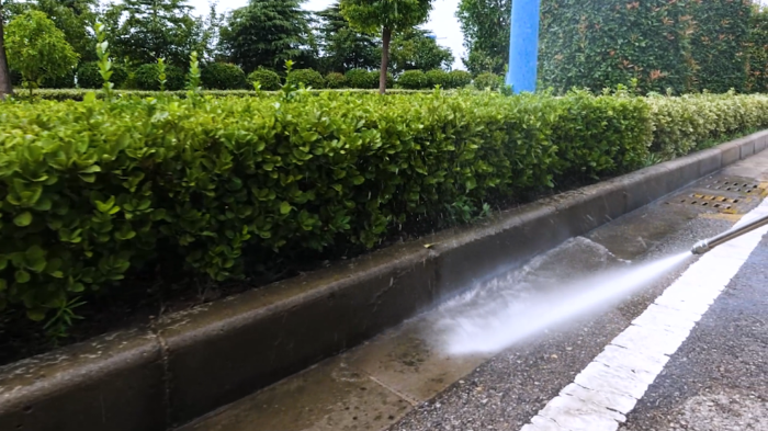 高壓祛污,還原路面本色”:高壓手持噴槍,輕松瓦解地面頑固污漬,顯著提升道路潔凈度,助力城市考評(píng)爭(zhēng)優(yōu)。