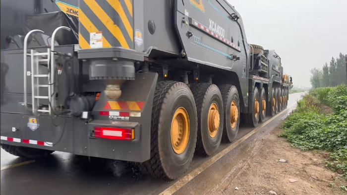 河北鄉(xiāng)間的暴雨里,一輛近30米長的“鋼鐵巨獸”正緩緩“橫移”——11橋22個輪胎穩(wěn)穩(wěn)抓地,16個驅動輪沖破泥濘,即便暴雨讓土路打滑,它也能靠“蟹行模式”精準靠邊。這臺價值近“半個小目標”的徐工XCA4000起重機,正用硬核實力詮釋“大國重器”的真正含義。