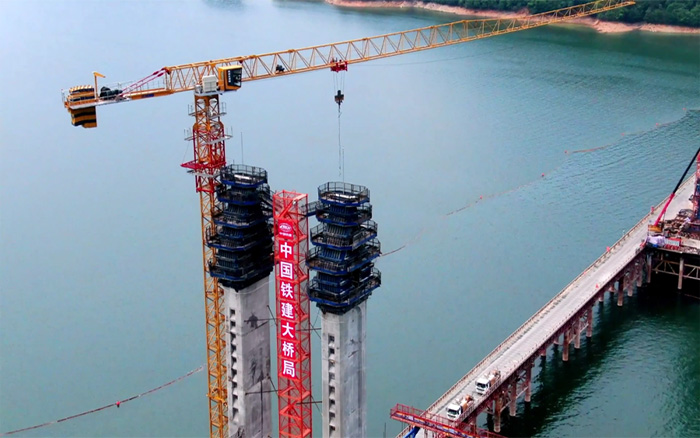 據(jù)項目人員介紹:橋面以上塔高47.23米,每個橋塔設置9對斜拉索,共有箱梁161節(jié)段,最大節(jié)段梁高12米……從吊裝到建造橋塔主體全方位考慮,選擇穩(wěn)定高效,智能精準的設備尤為重要。