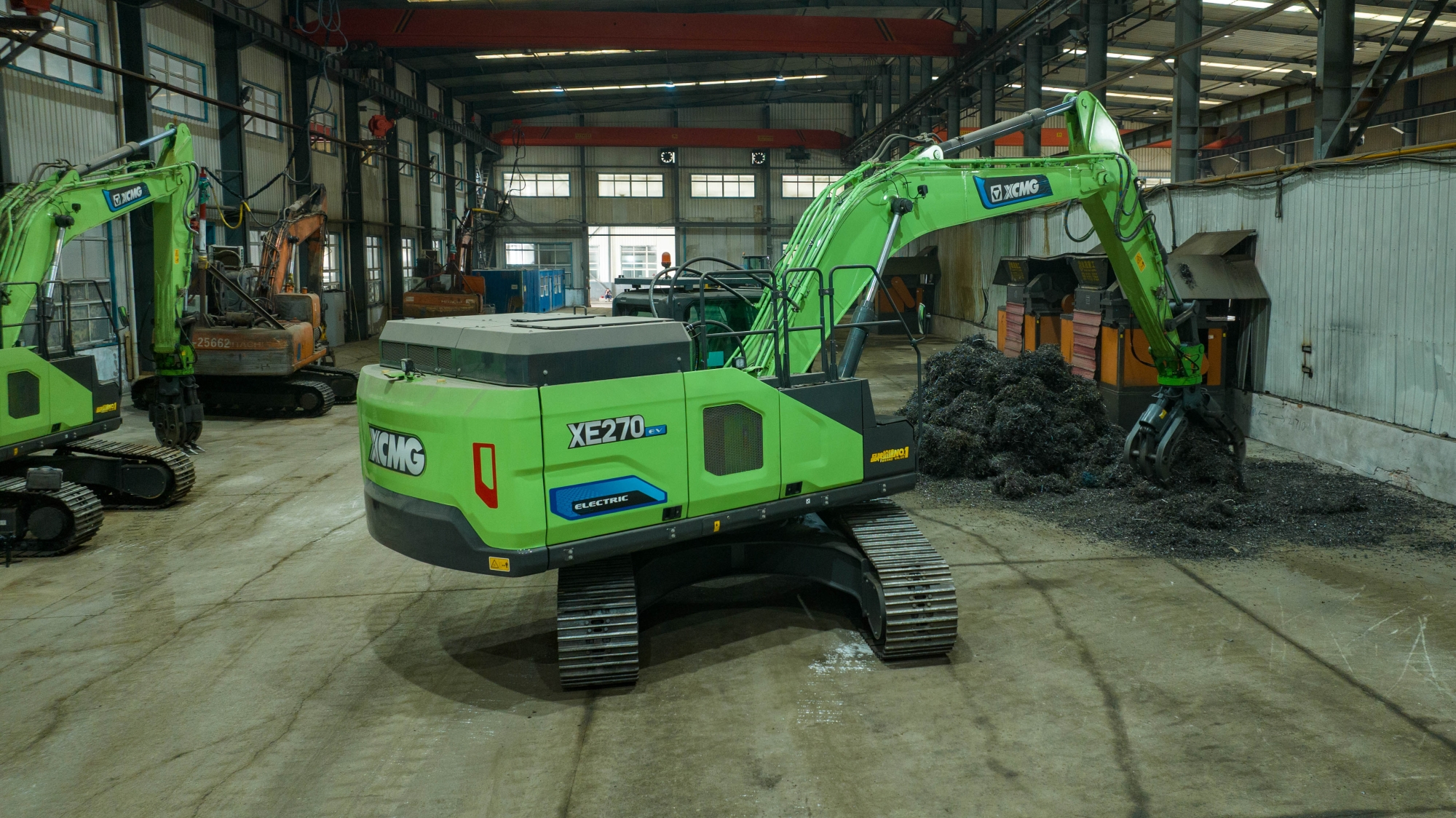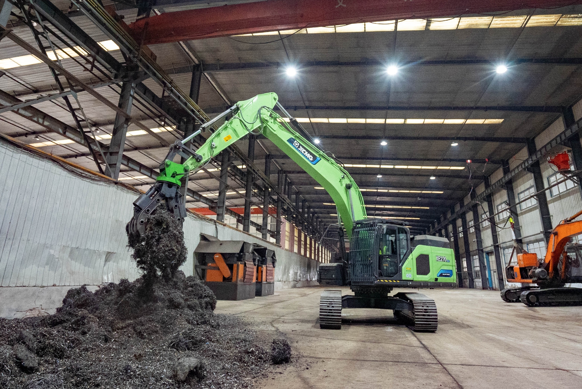 在河北唐山某鋼廠內(nèi),兩臺(tái)徐工XE270EV純電動(dòng)挖掘機(jī)正靈活地進(jìn)行鐵屑裝車作業(yè),與傳統(tǒng)燃油設(shè)備轟鳴、濃煙滾滾的場(chǎng)景不同,這里只有電機(jī)運(yùn)轉(zhuǎn)的低鳴和高效作業(yè)的節(jié)奏聲。